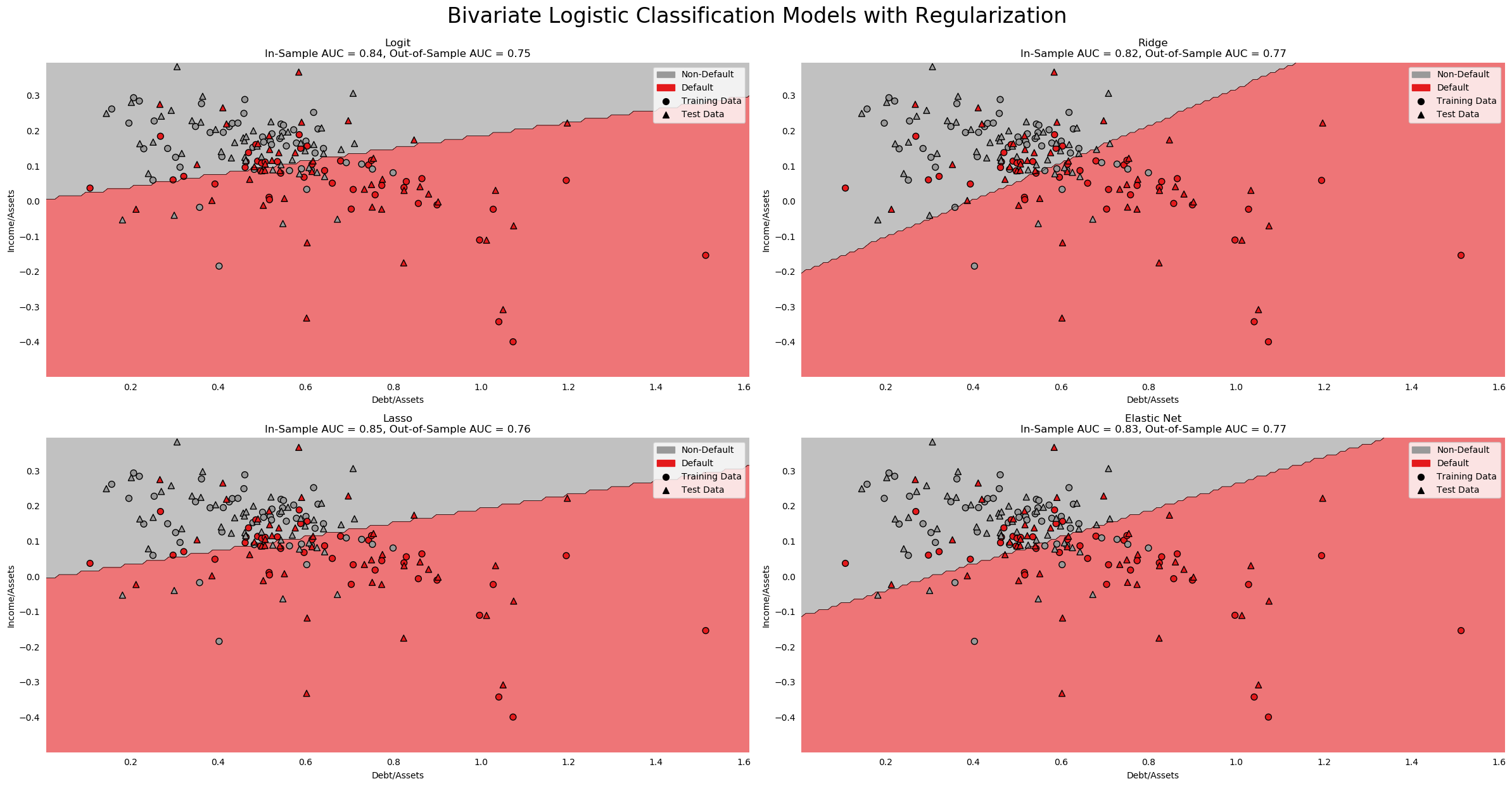 title = title + f"\nIn-Sample AUC = {train_score:.2f}, Out-of-Sample AUC = {test_score:.2f}"