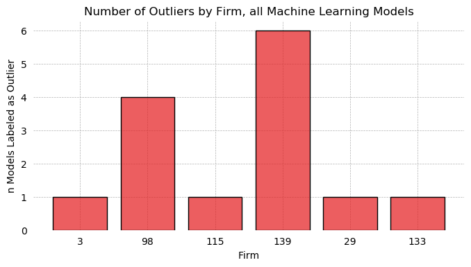 ax.set_title('Number of Outliers by Firm, all Machine Learning Models')